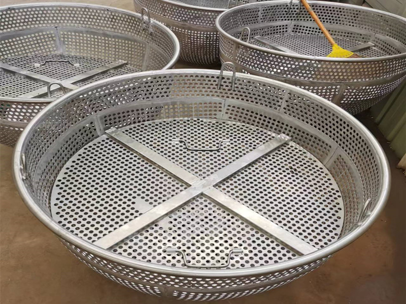 山东诸城光锐机械有限公司夹层锅电动吊篮材质为304或316,材质、板材厚度可根据客户要求定制。耐腐抗锈,板材数控冲孔,高密度布孔:扎实、光滑,耐酸碱。孔径大小可调,样式可选,氩弧焊接,坚固耐用,简洁美观,清洁卫生,符合食品卫生标准。筐外加装箍圈,也可上加吊钩,用电葫芦直接提升,使用方便,还有100L、200L、300L、500L、600L、800L、1000L夹层锅篦子。上面可以加不锈钢管,方便自动卸料,适合于卤制、油炸、蒸煮等小食品用。下面设计有卸料口,也可以设计简易不锈钢小推车,把不锈钢夹层锅吊篮直接推走,简单方便,坚固耐用!